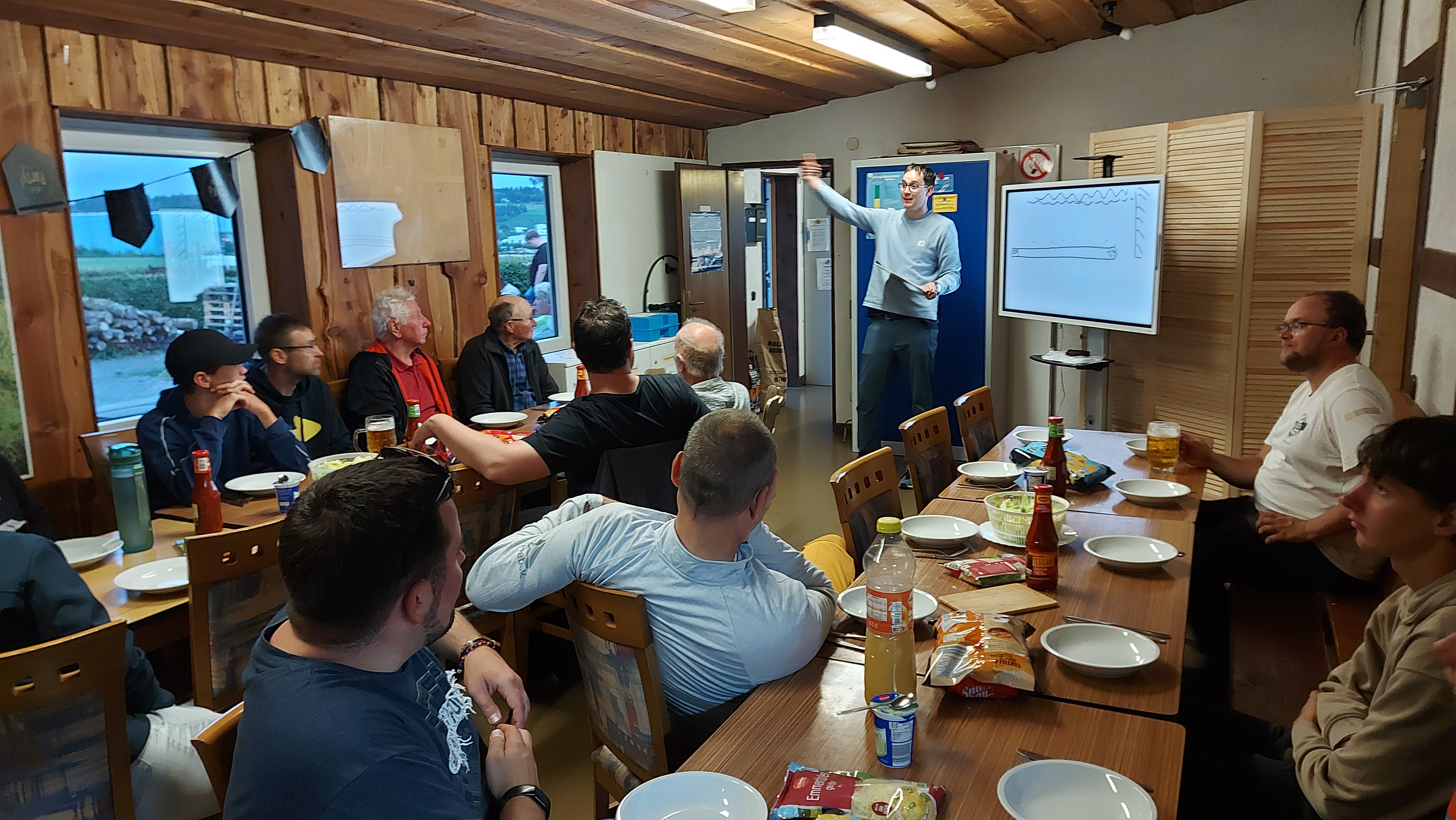 Nach dem Flugbetrieb wurden abends bei dem abschließenden Briefing der Tag und mögliche Verbesserungsvorschläge für den Ablauf während des Flugbetriebs besprochen. Anschließend saßen wir dann alle beim Abendessen und am Lagerfeuer zusammen. Dort wurden die besten Starts und Landungen des Tages noch einmal ausgiebig diskutiert – natürlich nicht ohne, dass ein oder andere Lachen und gegenseitige „auf die Schippe nehmen“.