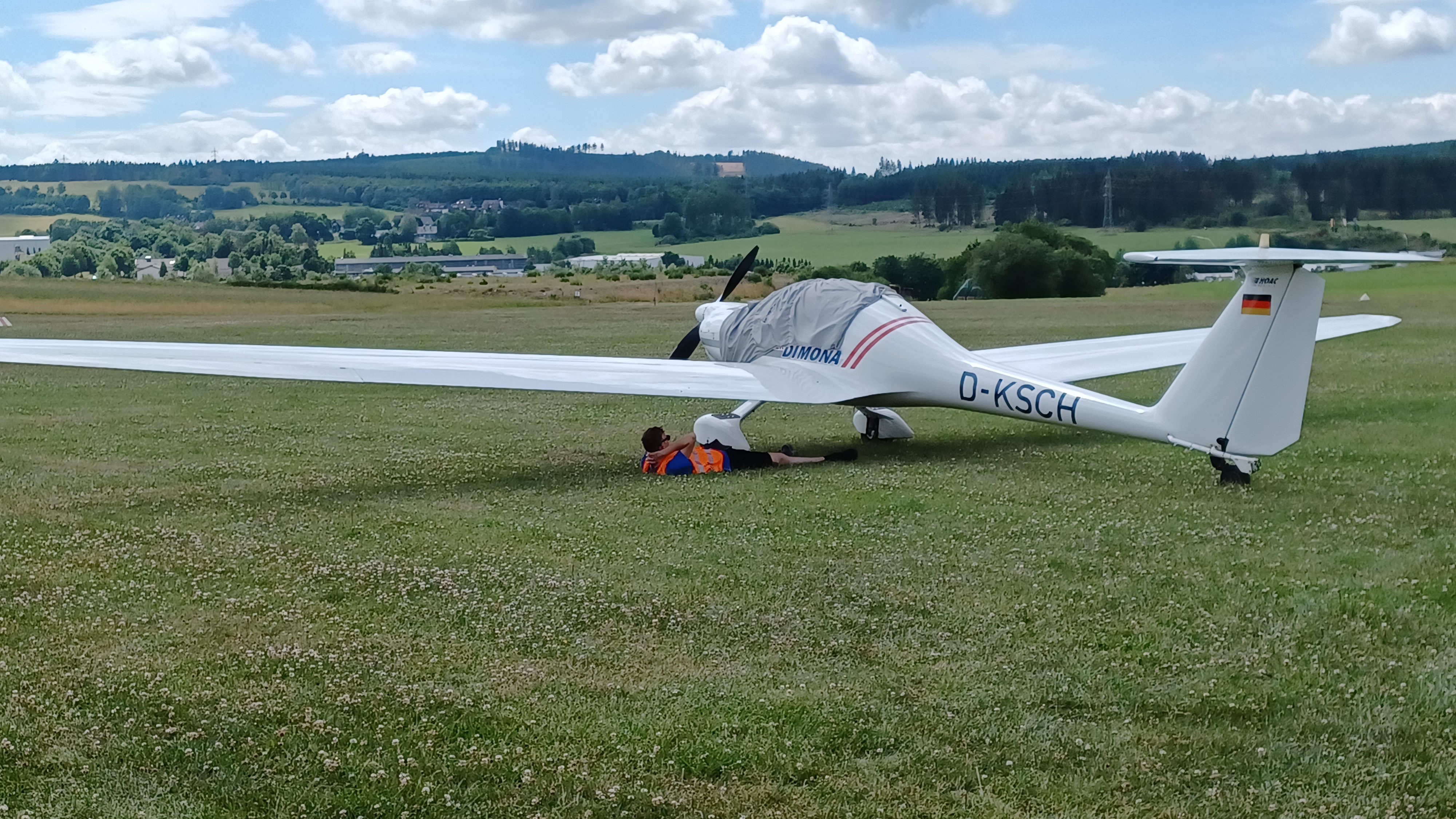 Egal ob für die Schulung oder für die fertigen Piloten, sobald gutes Wetter ist wird sie meist als erstes aus der Halle geholt. Wenn man also im Wittgenstein unterwegs ist und bei gutem Wetter an den Himmel schaut und einen Segelflieger entdeckt, wird es häufig unsere 13 sein.